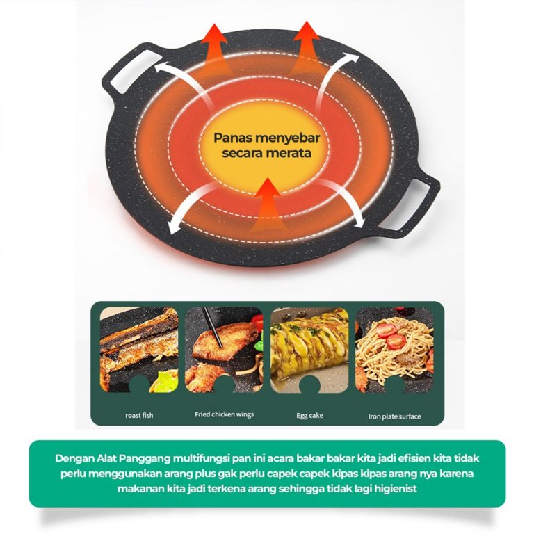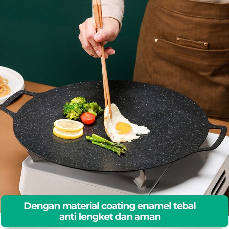 Korean Grill Pan Adalah alat masak ANTI LENGKET dengan bahan Premium coating enamel yang ELEGAN. Dengan Wajan ini bunda tidak perlu lagi memasak dengan banyak minyak dan akan membuat makanan jadi lebih sehat dan cepat matang juga. Bunda Bisa Bikin Makanan Berikut ini tanpa menggunakan minyak :Omlet, Telur Mata Sapi, sosis, steak, burger, hot dog, kebab, BBQ, dan menu istimewa lainnya.