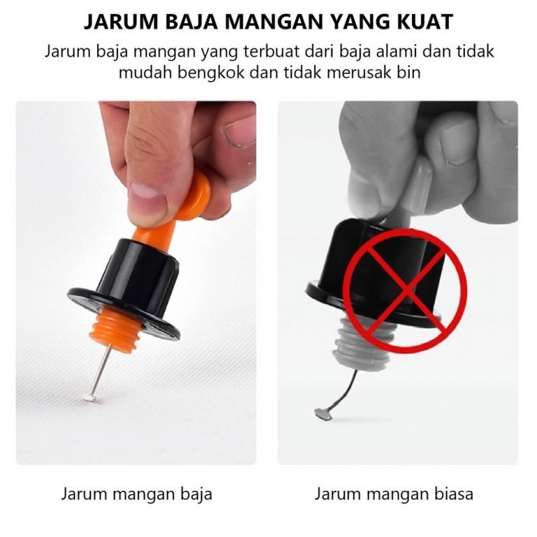 Jarum baja berkualitas, awet dan tahan karat. Ukuran nat umum digunakan, bisa dipakai berulang – ulang.