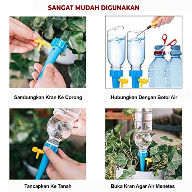 Dengan alat siram tanaman otomatis infus ini, anda dapat meninggalkan tanaman kesayangan anda lebih lama tanpa khawatir tidak ada yang menyiram dan menjaga kelembaban media tanam selama beberapa hari.
