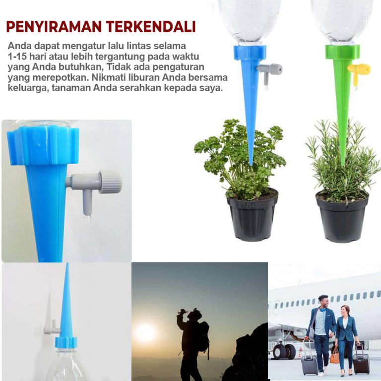 Dengan alat siram tanaman otomatis infus ini, anda dapat meninggalkan tanaman kesayangan anda lebih lama tanpa khawatir tidak ada yang menyiram dan menjaga kelembaban media tanam selama beberapa hari.