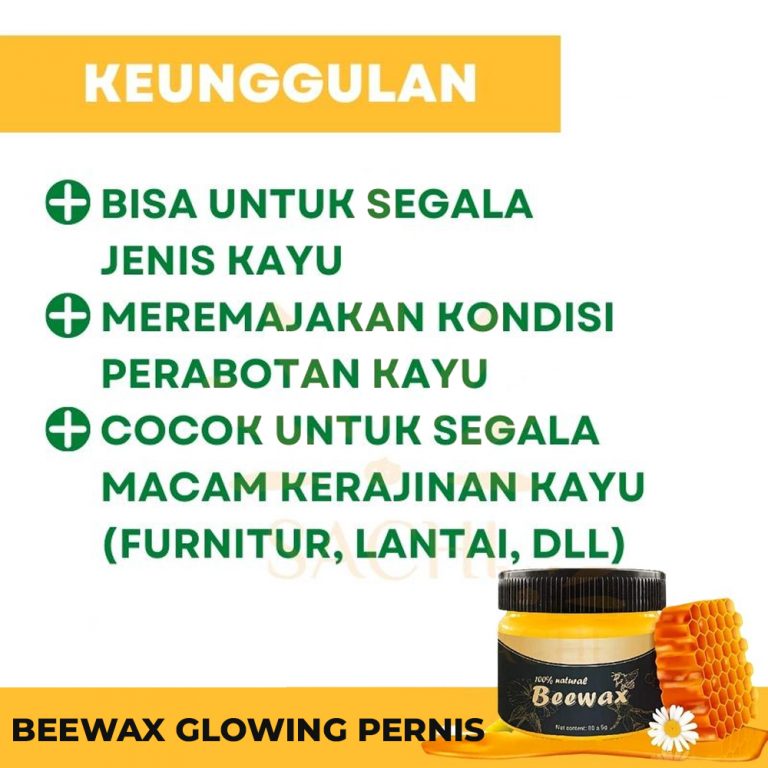 Beeswax Glowing Pernis adalah bahan alami yang hebat untuk memoles, memperbaiki, dan mengembalikan keindahan alami kayu. Beewax ini dapat menembus ke dalam kayu dan memberikan lapisan pelindung ke kayu. Ini dapat menghasilkan penampilan yang halus dan mengkilap.