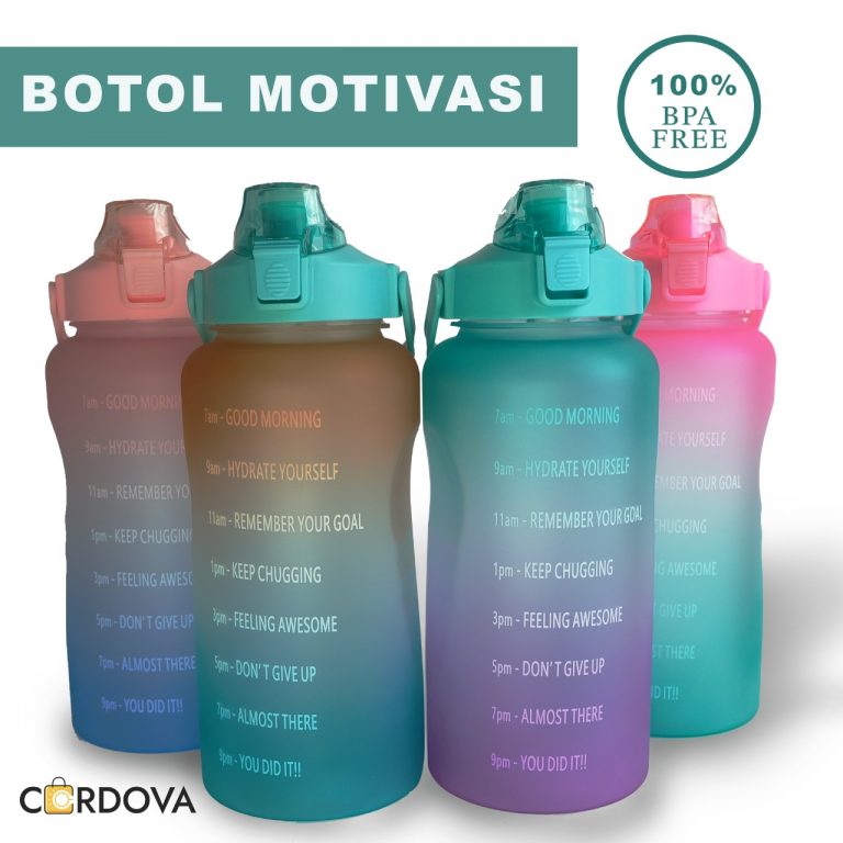 Botol Motivasi Gemoy adalah botol minum yang dirancang khusus untuk kamu-kamu yang jarang minum, karena di depan botolnya ada penanda jam untuk minum jadi asupan air dalam sehari anda akan tercukupi. Cocok sekali untuk anda yang tidak suka minum dan untuk yang gemar berolahraga.
