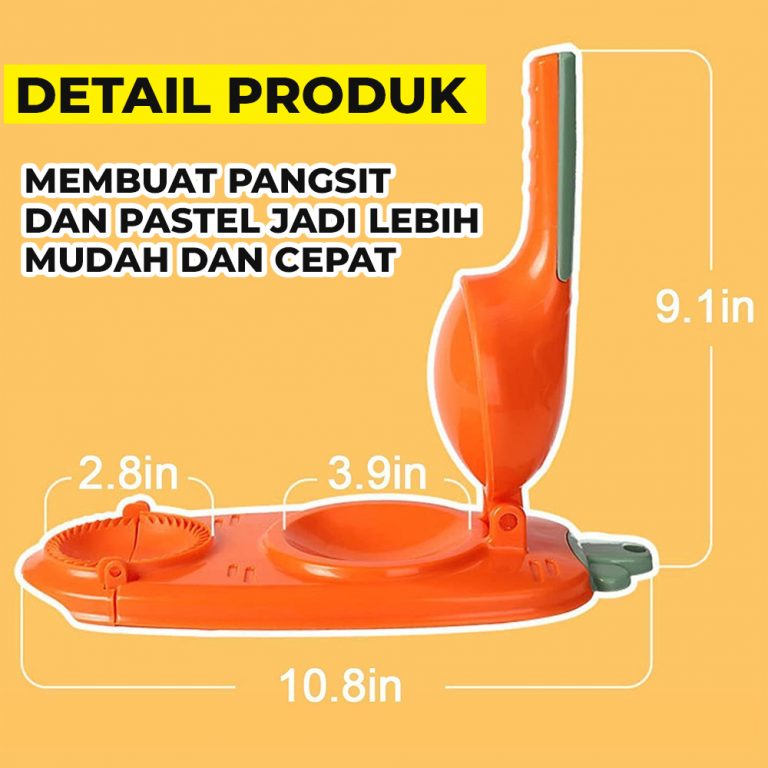 • Desain 2 in 1 , press adonan kulit pangsit sekaligus melipatnya hanya dengan satu alat.