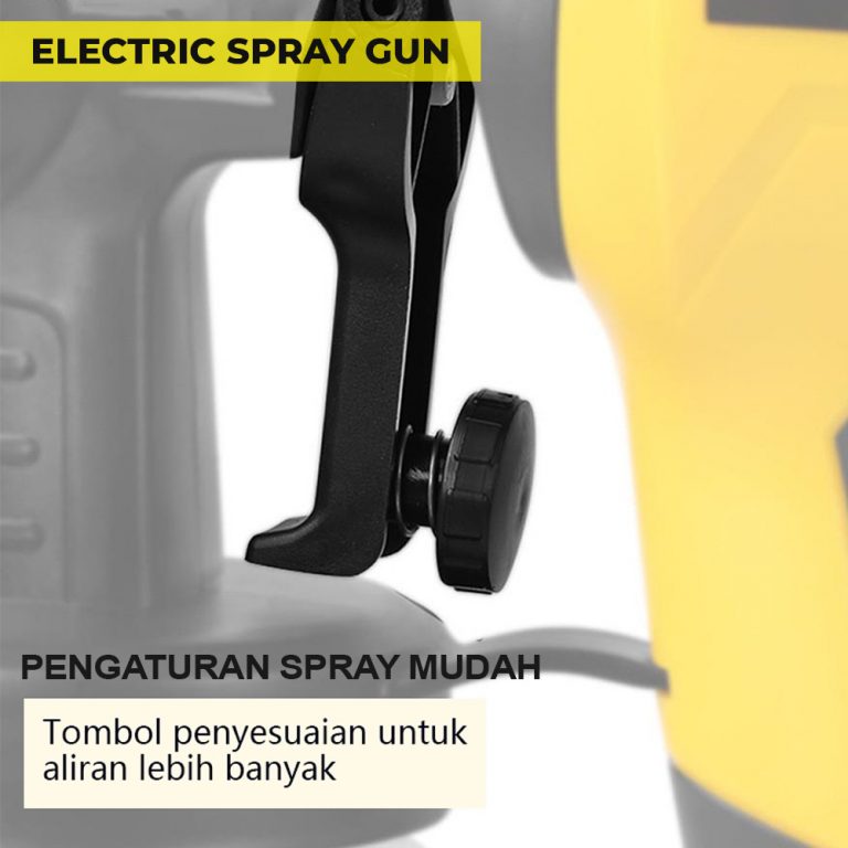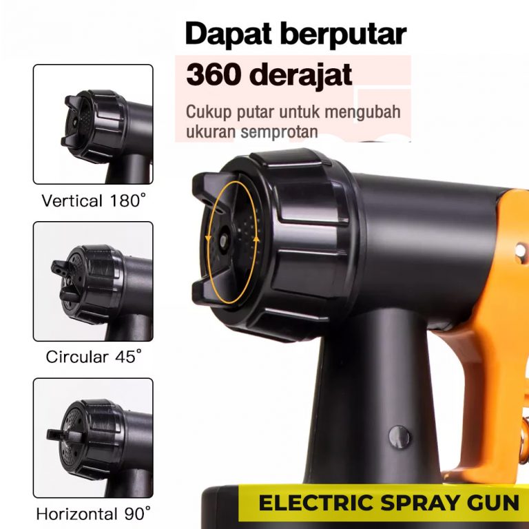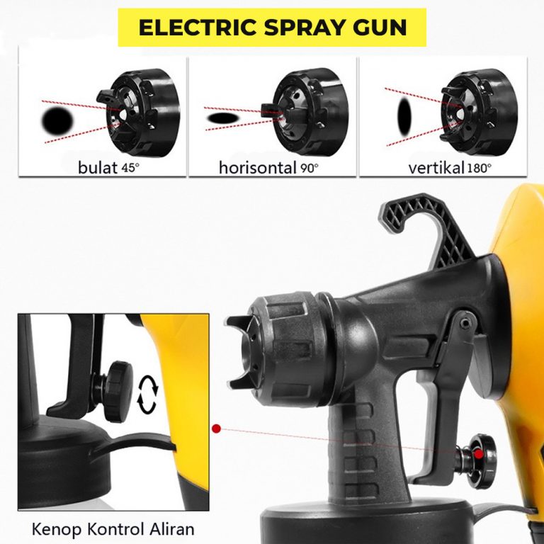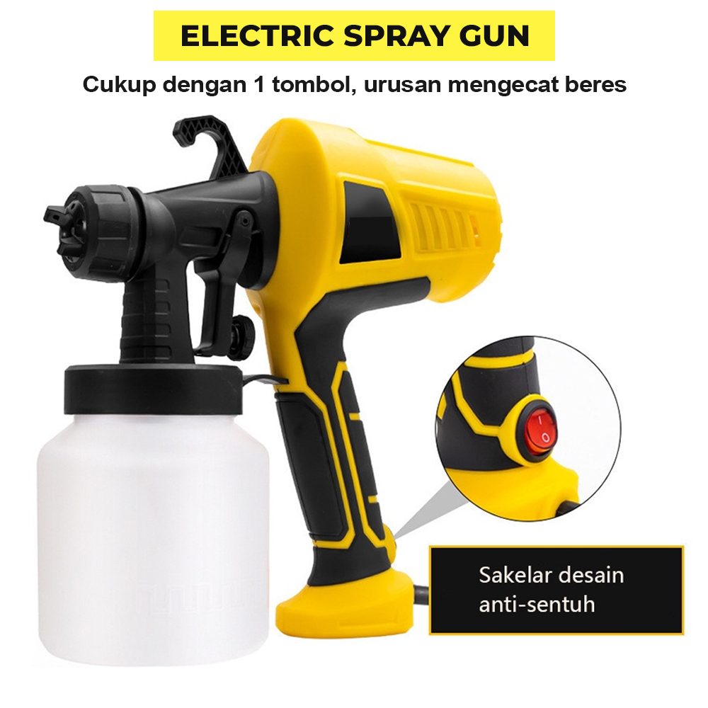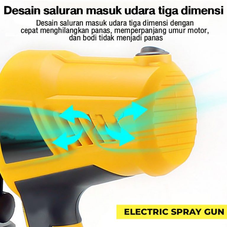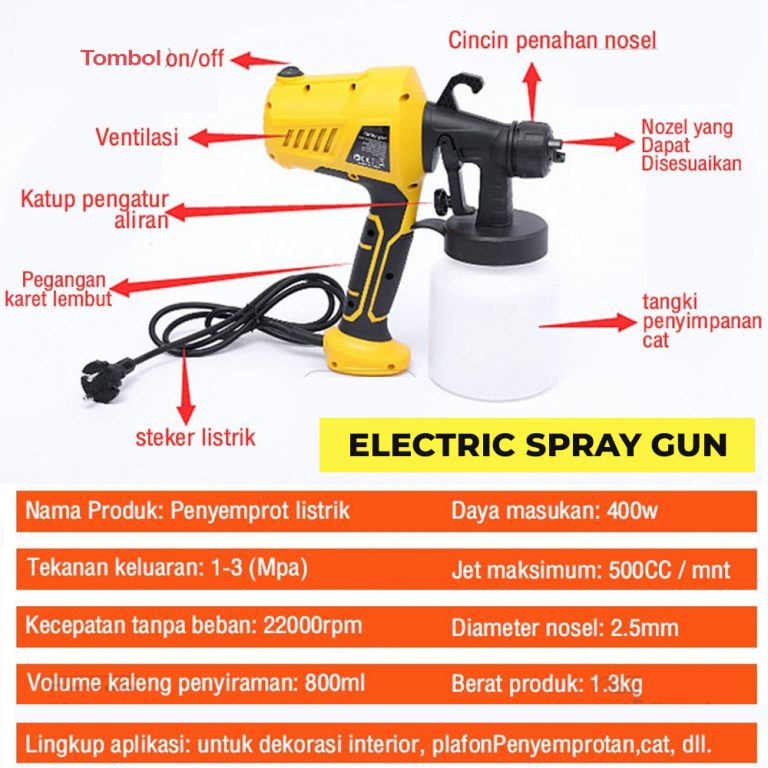 Dengan Electric Spray Gun, Mengecat lebih mudah dan praktis tidak belepotan dan hasil lebih baik, dengan menggunakan electric spray gun. Hemat listrik. Tekanan angin besar sehingga bisa memudahkan proses pengecatan tanpa perlu kompresor. Sudah termasuk selang untuk memudahkan proses mengecat.