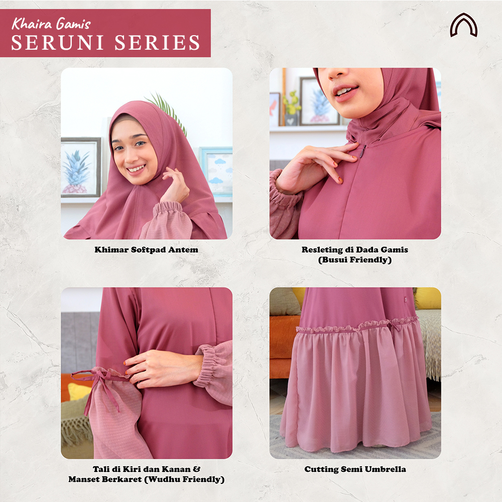 KINI HADIR KHAIRA GAMIS SERUNI SERIES dengan desain yang simple dan tetap memberikan kesan ELEGANT dan pastinya