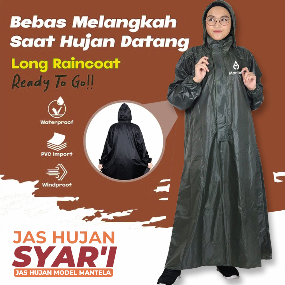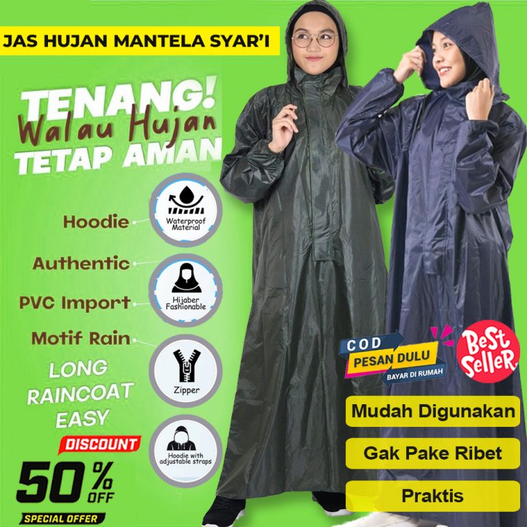 Jas hujan ini terbuat dari bahan material yang sangat bagus yaitu PVC 2.5 sehingga anti air (100% waterproof), tidak panas, tidak kaku dan tidak mudah sobek karena gesekan. Selain melindungi tubuh, tersedia juga tali pengikat pada bagian kepala untuk memberikan Anda perlindungan yang lebih maksimal.  Kini hadir dengan design terbaru sehingga dapat digunakan untuk pria maupun wanita yang syar’i.