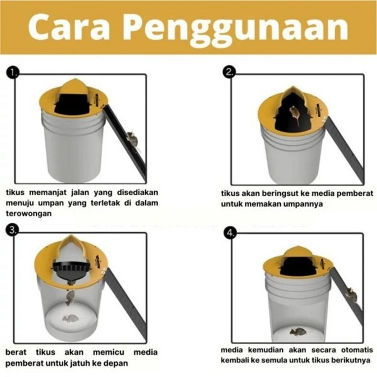 - Cara menggunakannya sangat gampang, cukup pasang tutup ini pada ember berukuran 30 cm dan kemudian letak makanan tikus pada bagian atas.