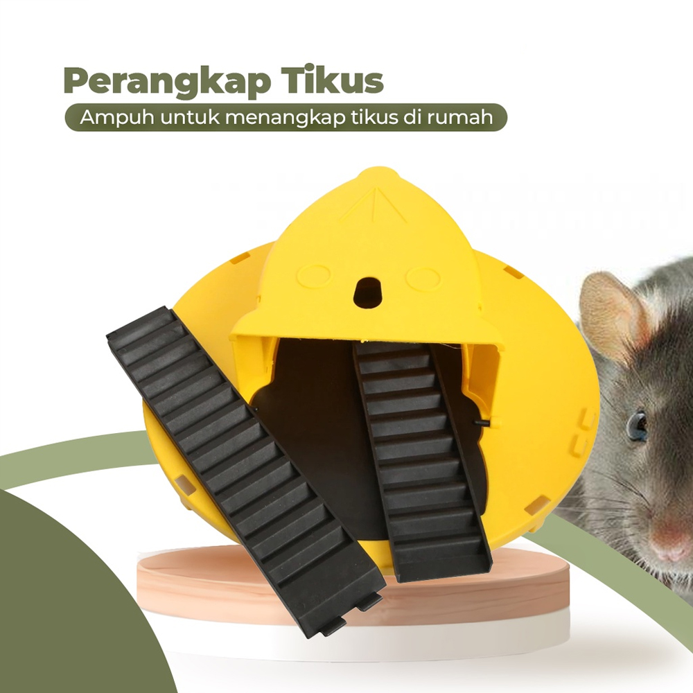Alat ini merupakan perangkat tikus yang dapat dipasang pada berbagai wadah ember. Cara menggunakannya sangat gampang, cukup pasang tutup ini pada ember berukuran 30 cm dan kemudian letak makanan tikus pada bagian atas.