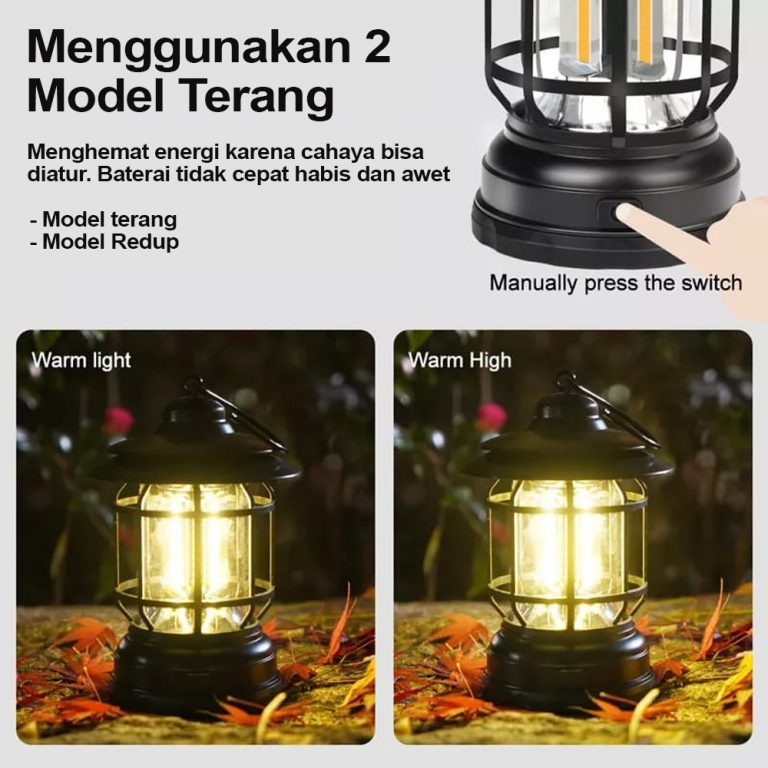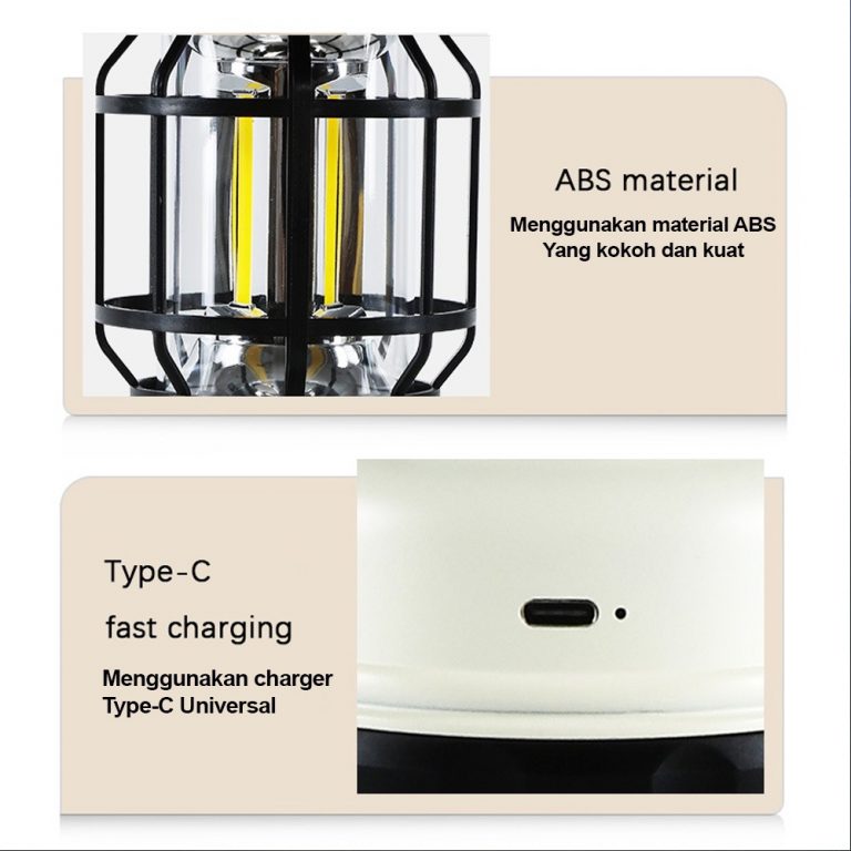 Desain lampu camping lentera ini memang keren dan menarik dan jangan ragu karena cahaya nya super terang berwarna kuning hangat dan terbuat dari bahan ABS. Lampu ini juga kecil dan ringan, dengan kait, mudah untuk dibawa dan bisa digantung dimanapun cocok untuk dibawah ke perkemahan, piknik malam, atau saat memancing.