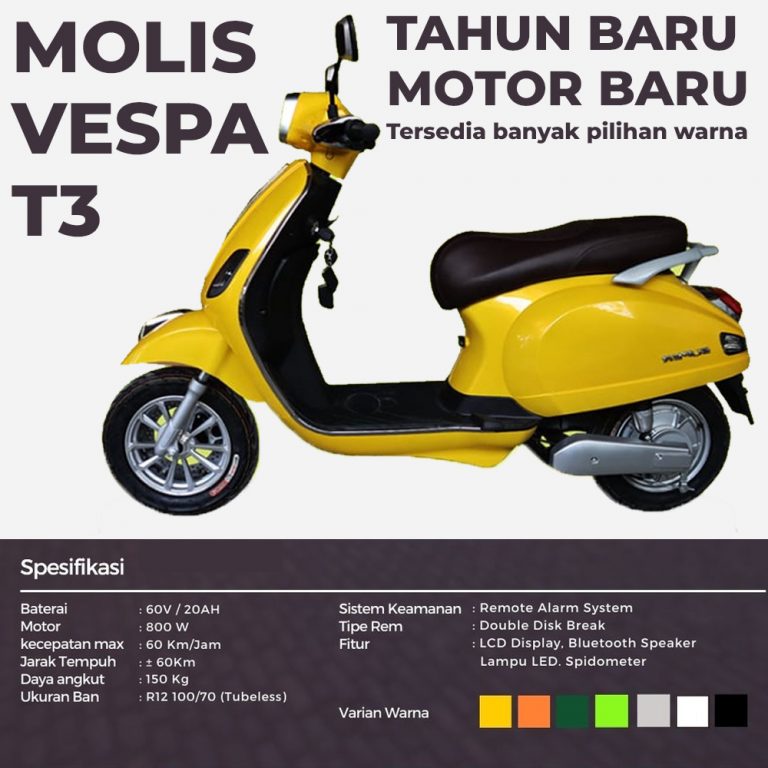 Dengan motor listrik T3 VESPA ini, kamu siap pergi kemanapun kamu mau pergi, karena surat – surat nya lengkap.