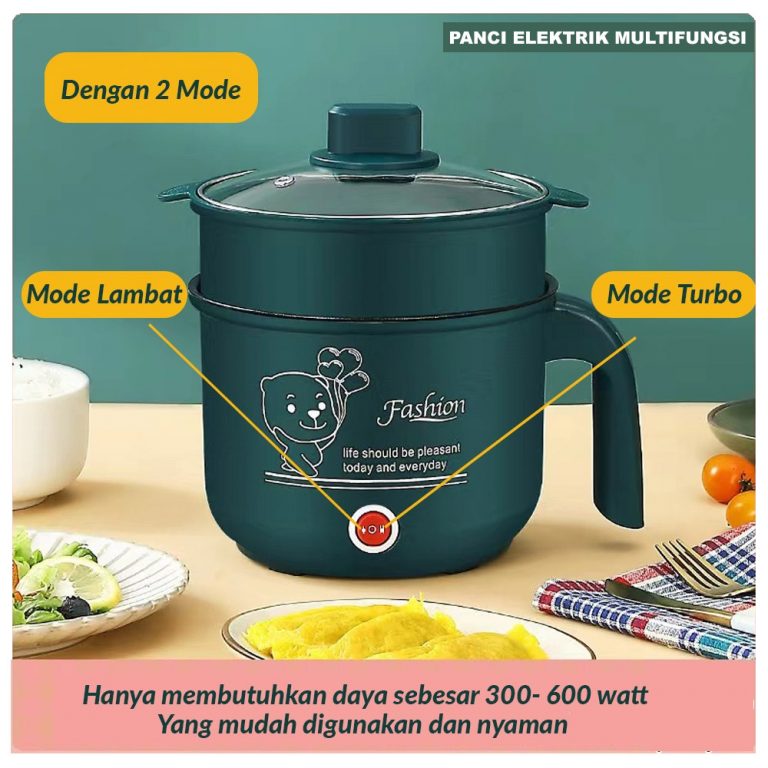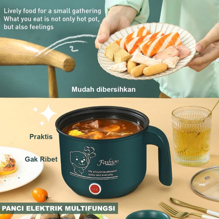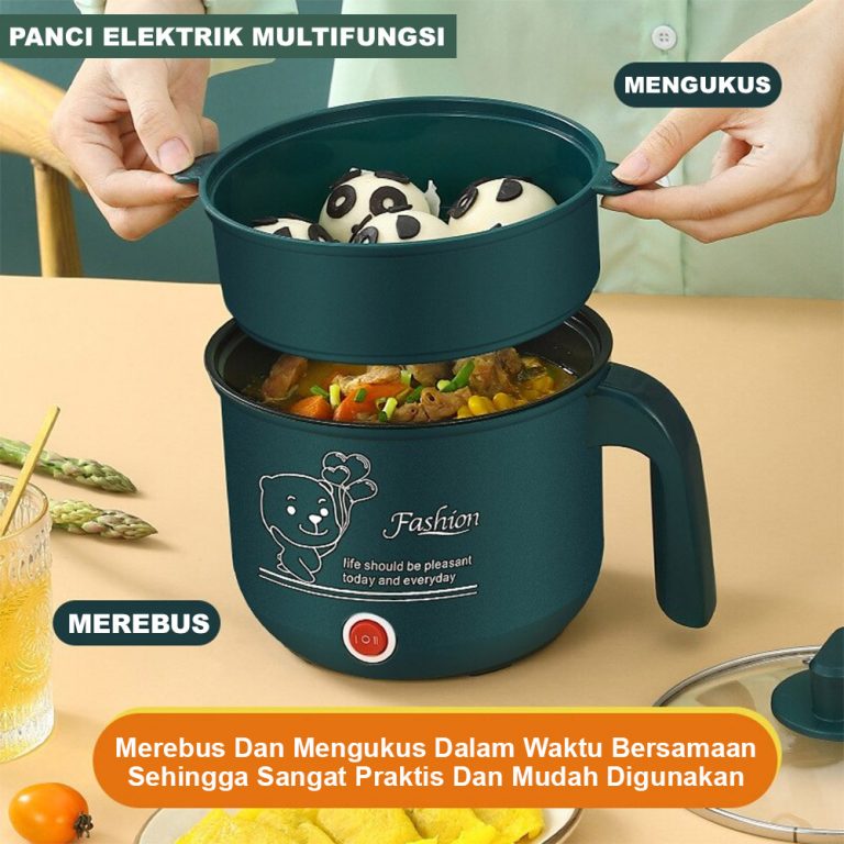 “Gak perlu lagi repot memasak menggunakan banyak alat, apalagi kalo saat masak gas abis pasti kesel parah kan bun?. tinggal pakai Panci Elektrik Multifungsi ini semua beres! Cukup dengan menekan tombol semua beres, gak lengket, gak ribet, dan hemat biaya”