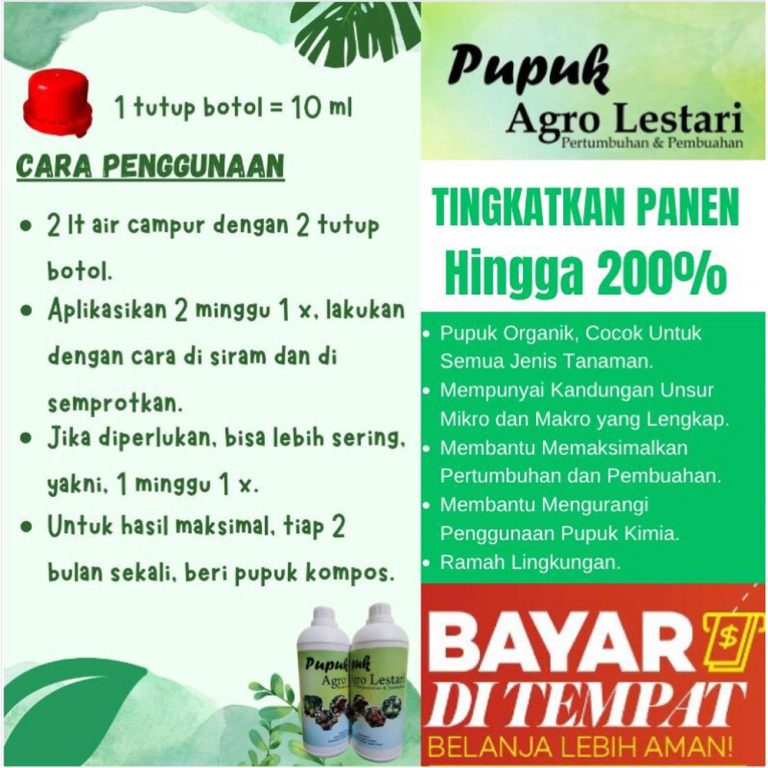 Pupuk Agro Lestari Merupakan Penyubur Akar, Daun, Bunga dan Buah dengan formula khusus dari pakar pertanian yang berfungsi untuk merangsang pertumbuhan tanaman dan oembuahan, sehingga tanaman menjadi sehat dan menghasilkan buah berlipat.