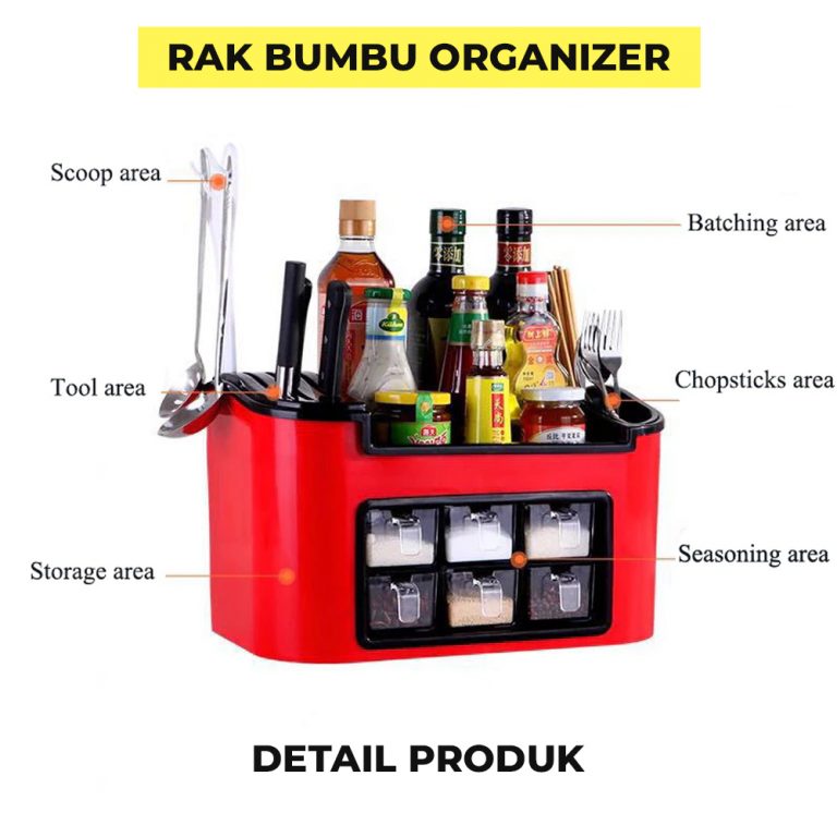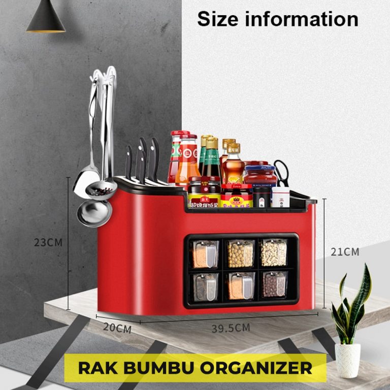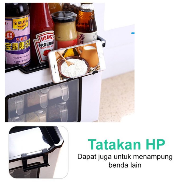 Multifungsi, selain untuk taruh bumbu juga bisa untuk tempat peralatan dapur seperti, pisau, gunting, sendok, sumpit, centong untuk masak dll.