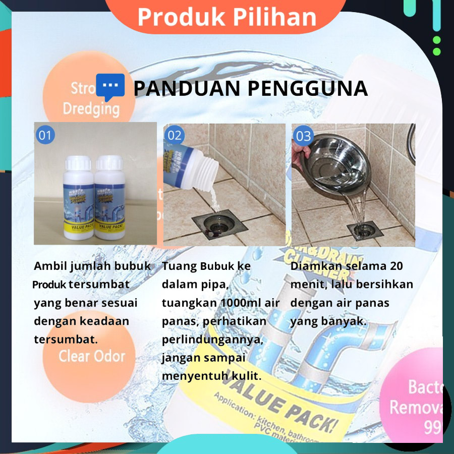 ✔️ Masukkan powder dalam sink and drain cleaner secukupnya (40 gr untuk saluran pipa wastafel / bak cuci yang, 200 gr atau lebih di toilet dan pipa yang besar), tuangkan ke dalam pipa.