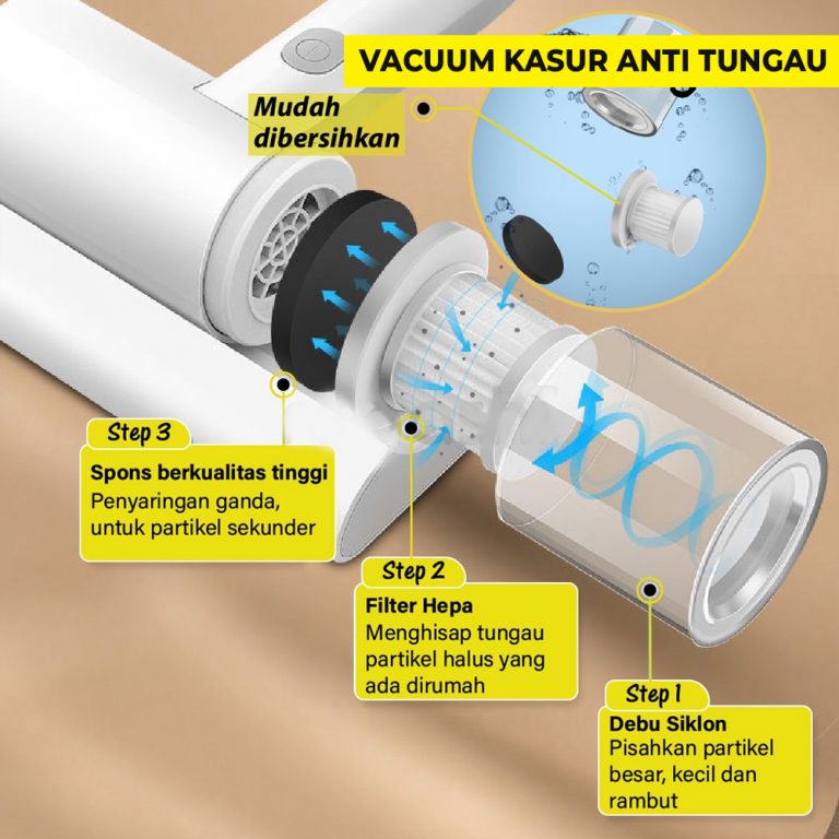Alat Penghisap debu ini adalah solusi buat kamu yang mau menyedot debu atau kotoran halus pada kasur, kursi, sofa dan media kain lainnya. Produk ini dilengkapi dengan roda dibagian bawah yang bisa membuat proses membersihkan jadi lebih mudah, setelah membersihkan semua debu atau kotoran akan tertampung didalam wadah transaparan yang dilengkapi dengan Hepa Filter.